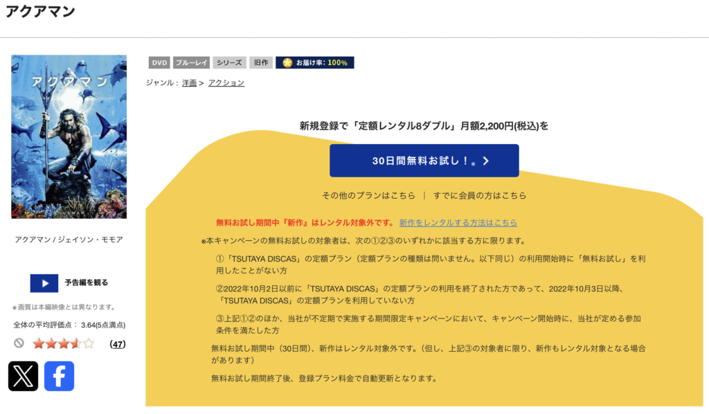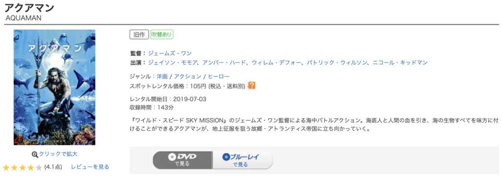 ゲオ宅配レンタルでも『アクアマン』シリーズをDVD/Blu-rayでレンタルできます。