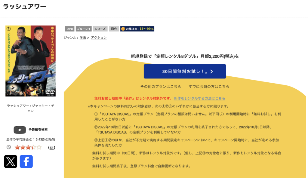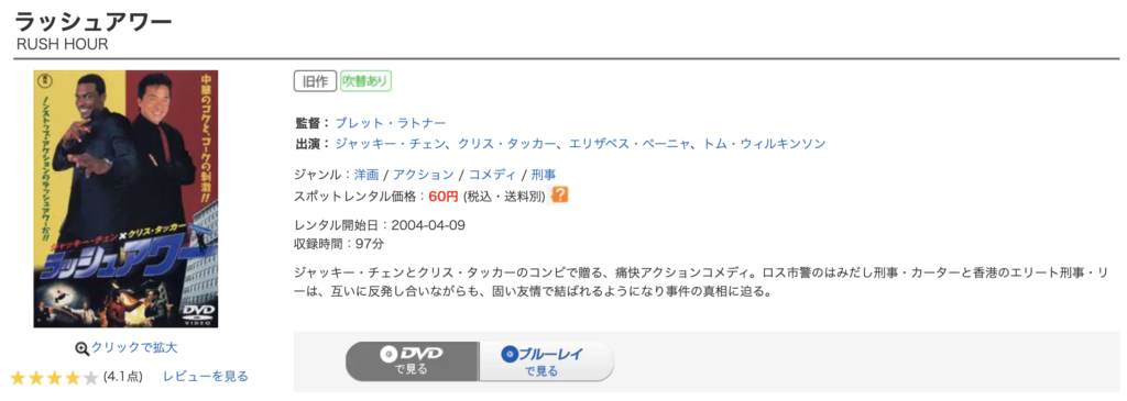 ゲオ宅配レンタルでも、『ラッシュアワー』の吹替対応DVDをレンタルできます。