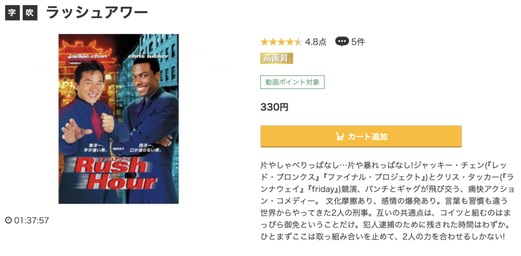 余ったポイントで『ラッシュアワー』シリーズのイッキ見も可能です。