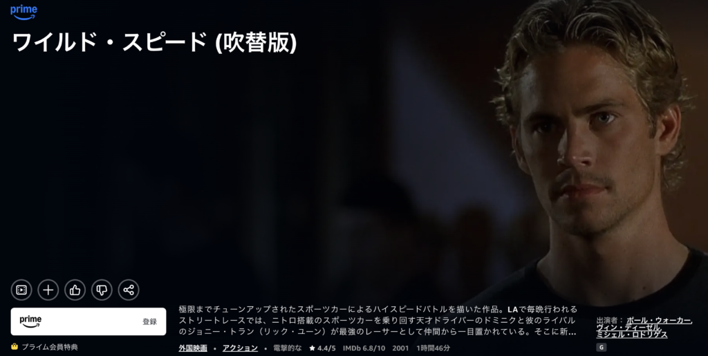 Amazonプライムビデオでは、『ワイルド・スピード』シリーズ1作目〜9作目までが見放題配信中です。