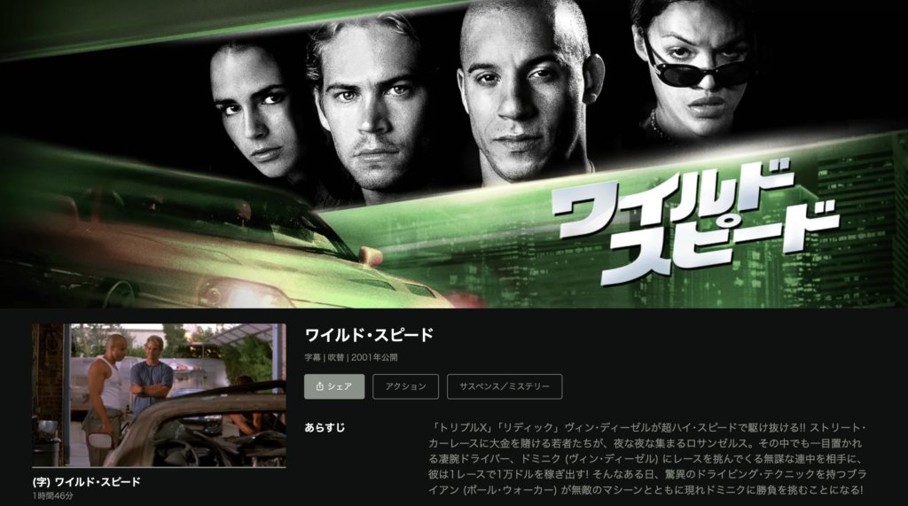 - 『ワイルド・スピード』シリーズの配信状況一覧