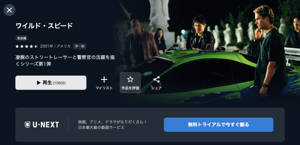 ▶今なら『ワイスピ』をU-NEXTでイッキ見!【31日間無料体験はこちら】